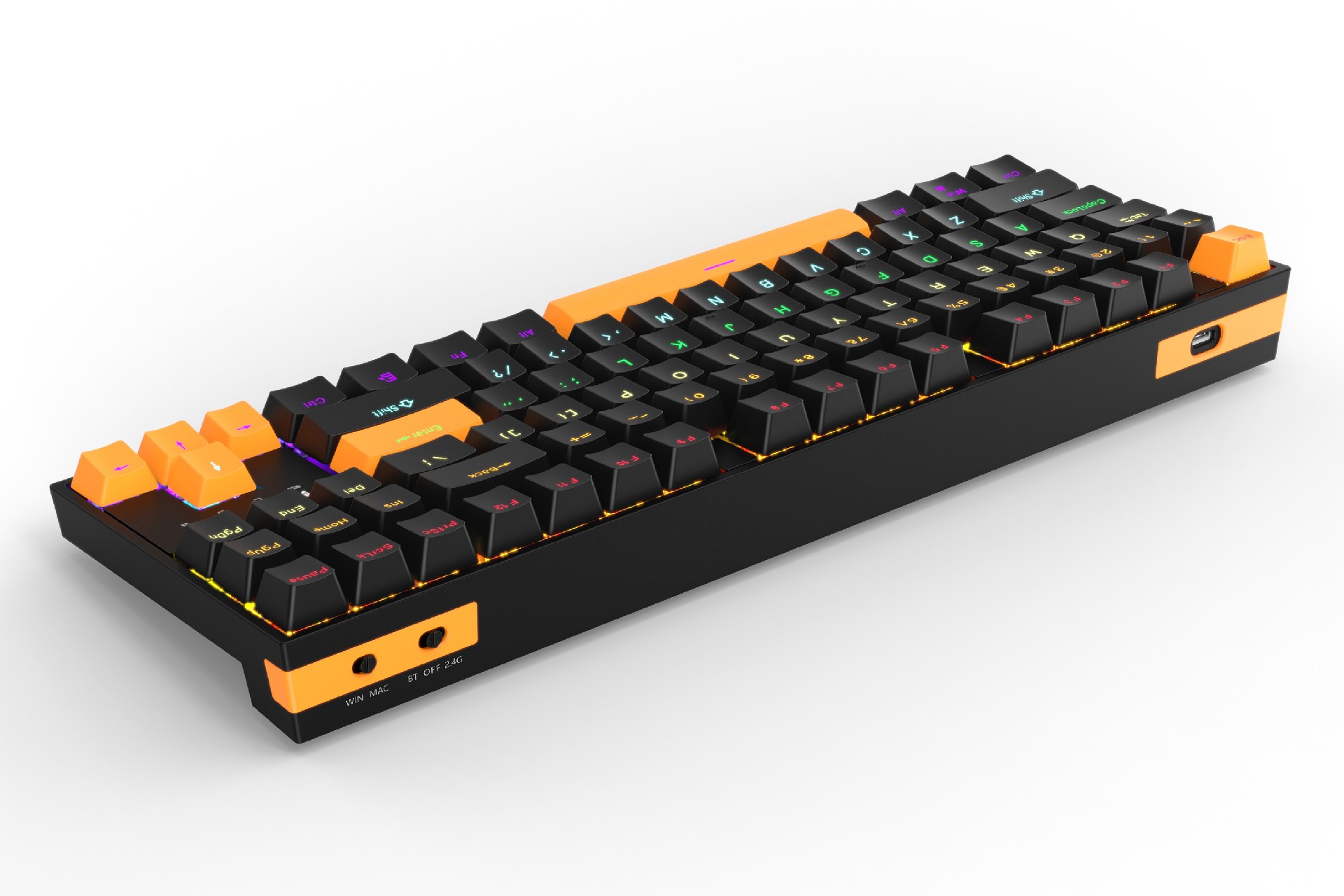 10.产品卖点:两侧翼流光灯。87键精简布局,简约而不简单 。2.4G接收器收纳仓。